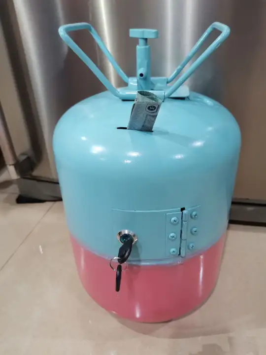 Jangan dibuang tong gas aircond yang sudah habis digunakan sebab kita boleh buat tabung simpanan duit. Kereta ni kita cabut engine dan pipe ac kena cabut,gas perlu kita buang, so bila install balik ac kena vacuum dan refil gas, x macam wira atau saga dan keret. Jadi kerosakan bukan disebabkan kebocoran. Setelah cooling coil dipasang, kompressor akan ditambah dengan minyak kompressor untuk melincirkan lagi pemusingan bahagian dalam kompressor. Tabung yang diperbuat dari tong gas aircond kereta ni dijamin tahan lasak, dan selamat untuk simpan duit.